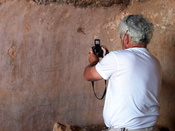 Lors de diverses visites (il y en aura plusieurs) nous découvrons parmi les ruines – le site de hauteur est complètement ruiné hormis quelques rares bâtiments dont l’église Hagia Sophia bien restaurée mais fermée – de nombreuses citernes souvent dissimulées sous les broussailles et dispersées sur le plateau. Comme elles sont ouvertes et souvent éboulées, on peut y pénétrer assez aisément (hormis la gêne de la végétation dense et épineuse). Et c’est là que commencent les découvertes, un des buts du voyage: les graffiti navals.
