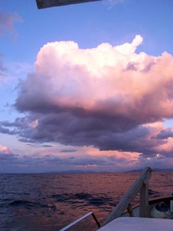 Traversée somme toute tranquille, petit reste de houle de SW, et vent faible. A midi, ouzo et mezzé, l’ordinaire du bord quand on est en mer ! Magnifique coucher de soleil sur Sifnos en arrivant à l’ouvert de la baie d’Adamas où nous accostons de nuit au quai.