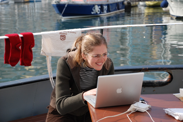 Il n'empêche qu'on a parfois des petites crises quand il s'agit de se connecter à internet depuis l'arrière du bateau (il y a que là que ça passe), surtout quand il pleut ou qu'il y a 50 noeuds de libecciu !