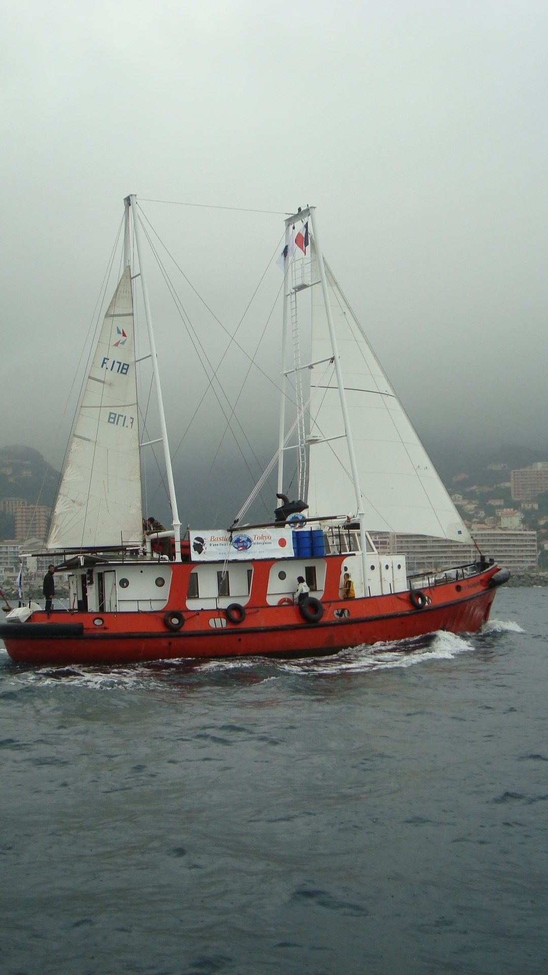 C'était le dimanche 26 avril 2009 … vent de SE assez frais, pluie, mer hachée. Le Manguier part pour Tokyo avec dix personnes à bord: Agathe Hercher, sa maman Cécile Zawieja-Hercher, Judith Puzzuoli, Claire Gazengel, Cécile Marion, Philippe Rigaud, Pierre Boivent, Jean Hercher, Jeff Veillard, et bien sûr votre fidèle et dévoué chroniqueur ! Tous n'iront pas jusqu'au Japon, mais tous ont la même envie de vivre cette belle aventure !