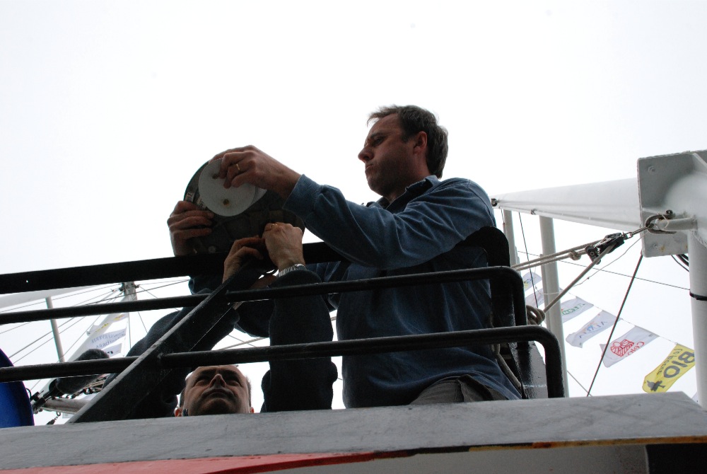 … venue spécialement à Douarnenez pour installer à bord une station météo MIN qui permettra de transmettre en continu des informations sur la pression barométrique et la température de l'air, paramètres nécessaires aux "modèles météos" . Et en même temps qui permettra d'ici peu de suivre la progression du Manguier en direct ! aïe aïe aïe, va falloir être sérieux …
