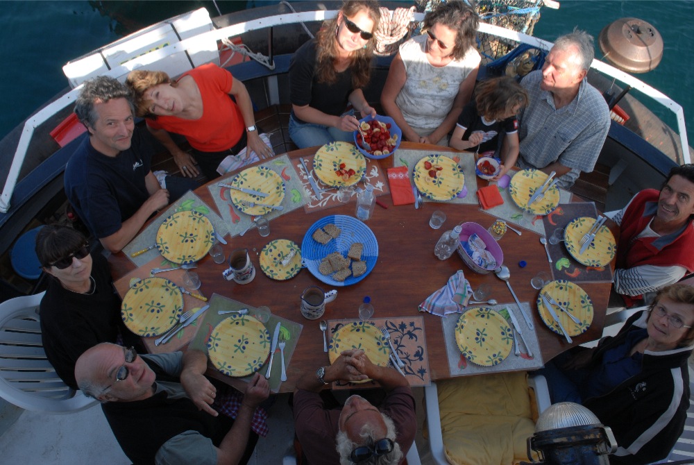 Reine- un bistro/resto unique à un bout de la baie et un marchand de poissons à l’autre bout après une bonne heure de marche. Le rythme est pris : rando , petite bière, manœuvres et bien sur on ne badine pas avec les repas et l’apéro du soir ( on a décidé de la jouer SAIN et de ne boire que le soir !!!! personne n’ose revenir sur cette décision contestable )