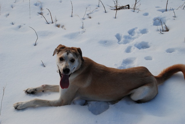sur un sentier de quad, au milieu des aulnes, dans un peu de neige. J’ai vite