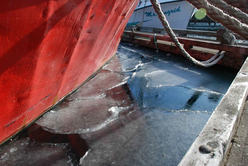Retour à Sand Point le 20 mars au matin, vol confortable ! Le Manguier est au moins aussi heureux que nous des retrouvailles. Je profite de la douceur du temps pour remettre en service le système d’eau courante à bord, ce qui est quand même bien pratique ! Sacrés méditerranéens ! Vous pensiez l’hiver déjà fini ! A l’heure où j’écris ces lignes, une nouvelle vague de froid est arrivée : moins 12°C, et un gros coup de vent de NW. Le port est vraiment bien abrité, et c’est à peine si le Manguier dodeline ! mais même la mer a un peu froid …