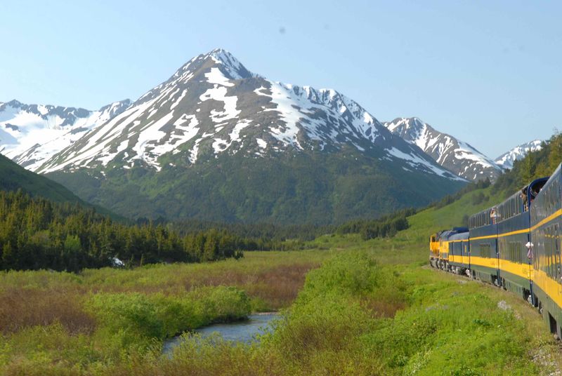 Une fois le vol Air Condor négocié, le plus dur est fait, il ne reste qu'à s'émerveiller de la maîtrise du tour operator. Tout est prévu, huilé, chaleureux et parfait : le train panoramique sous le petit soleil du matin, l'accueil du trio mangonaute de bord au son des polyphonies corses, à la saveur subtile des fines spécialités de là-bas et au choix déchirant entre une petite Orizza frappée et une robuste Pietra. Mais pas de trêve émolliente et en route pour le premier glacier. Visite privée à l'Aialik Glacier, tous les ingrédients sont là : l'orchestre de percussions pour une symphonie de craquements , grondements et bruit détonnants, les éclairagistes qui donnent dans les bleus ciel et turquoises, l'aide généreuse du soleil alaskan, la chorégraphie des éboulements de glace sans oublier celle des figurants, goélands et macareux, qui ne tiennent pas en place . La mise en scène est fabuleuse dans un feu d'artifice de cascades de glace.