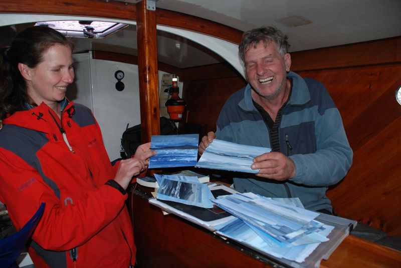 Rencontre bien sympa et bien intéressante avec le fameux Hollandais Tétu, comme il nous a dit être connu à Brest ! Henk a quelques centaine de milliers de milles dans le sillage, et en prime un hivernage à Tiksi dans sa tentative de passage du NE en 2003/2004, tentative hélas abandonnée suite à des problèmes de gouvernais tordus par les glaces. Malheureusement pour nous, le livre qu'il a écrit sur son hivernage est en hollandais, heureusement pour nous Henk était à bord, et nous avons très longuement discuté. Et appris plein de choses …