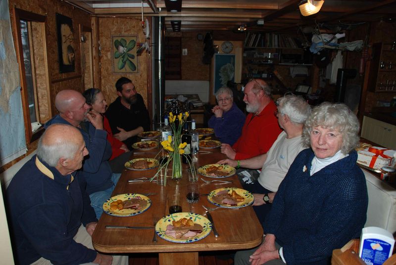 Beaucoup de monde vont et viennent sur le Manguier, et c'est ce qui est vraiment formidable avec ce bateau. Pâques, qui est une fête importante ici, est l'occasion de se retrouver le dimanche soir pour le Easter dinner. Joël avait préparé un excellent jambon braisé, accompagné d'une sauce à … la farine de chataîgne, que je lui avais ramené de Corse.