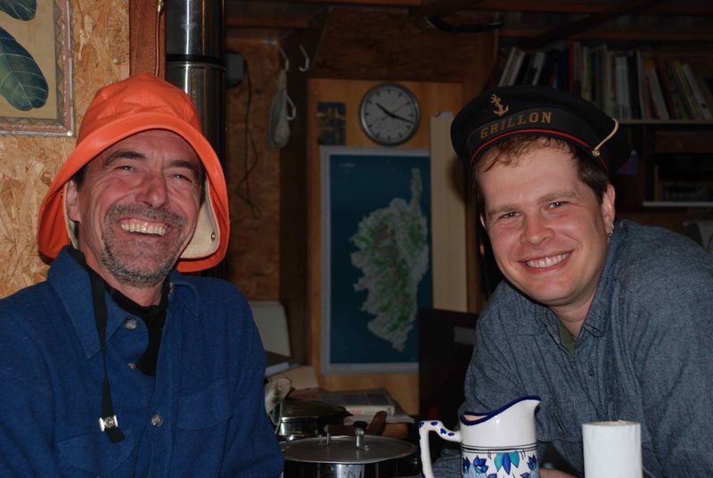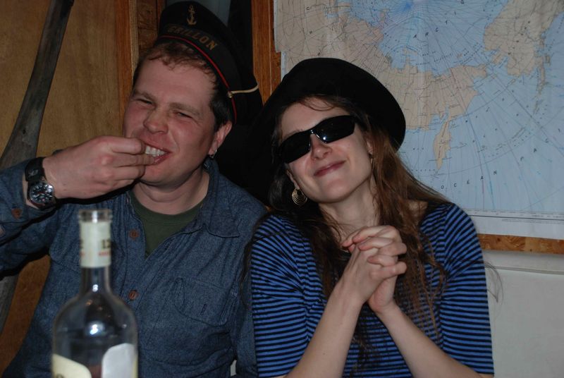 A gauche Tom, avec qui je suis rentré d'Anchorage, Rob, ancien commandant en chef de la base des Coast Guard, Ali et Rodgers, 2 australiens qui arrivent d'Australie sur leur bateau de pêche à la langouste, et gréé avec une voile, l'adorable petite Martine, Mike, l'homme aux 176 guitares ( ! ), le Chef, et Aldona, femme de Tom, qui part avec nous vers False Pas dans quelques jours,
