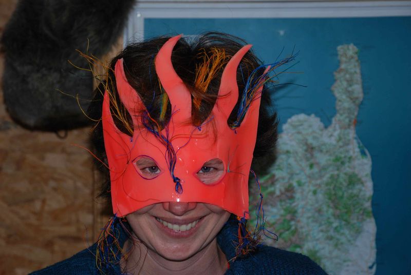 La thématique de la semaine, proposée par Agathe, était Confection d’un masque à partir d’éléments de récup, glanés sur les grèves ou dans les tréfonds du Manguier …