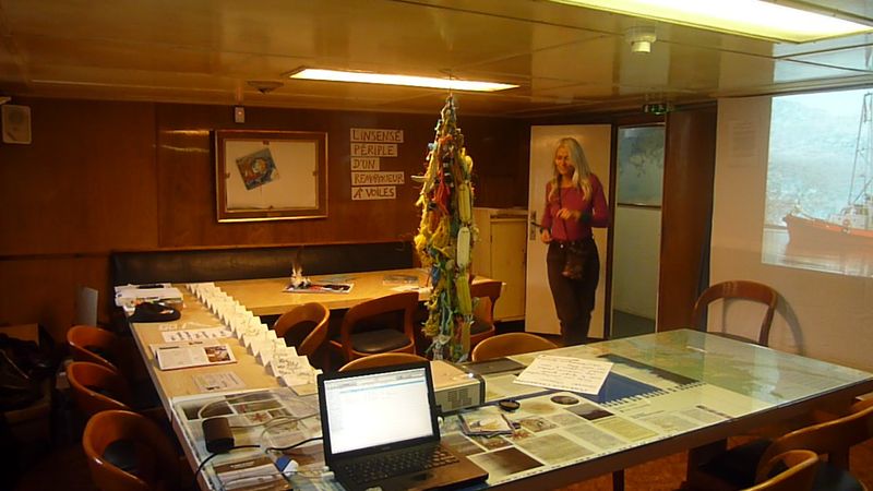 Laetitia, organisatrice du festival Les Savanturiers de la Mer et connaisseuse ès mangonautisme, nous a dévolu, à bord du chalutier océanographique la Thalassa, la salle à manger des officiers et scientifiques. Parfait ! Ce matin, nous y installons notre Insensé Périple. Les savantes recettes de Cécile, ses savants calculs de cambusière et le savant exposé de Rigaudus Historicus sur la May(h)onnaise attendent le public friand qui va se pointer en début d’après-midi.