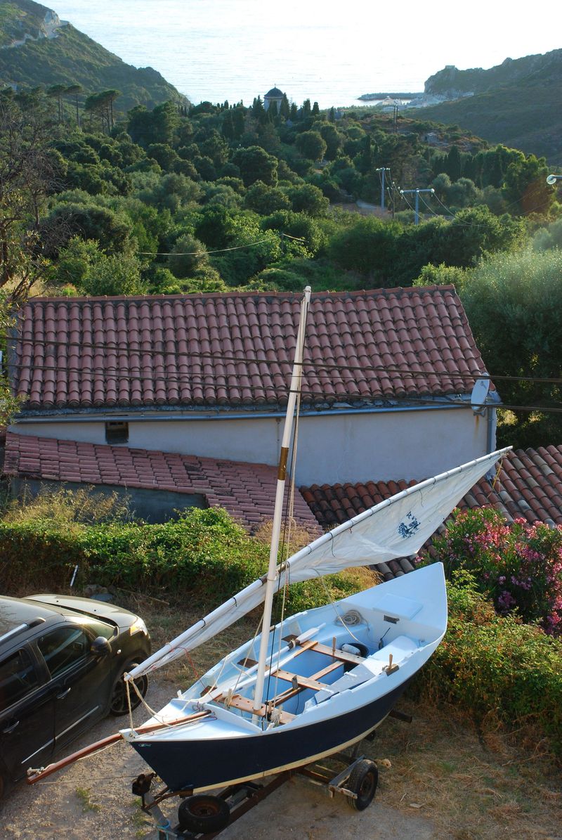 The famous Corsican wind the "Libecciu" is blowing hard ! but the forecast are good for the night and tomorrow, which will allow me to make the presentation of the Latin Sail in the small harbor of "Giottanni". We'll see …
