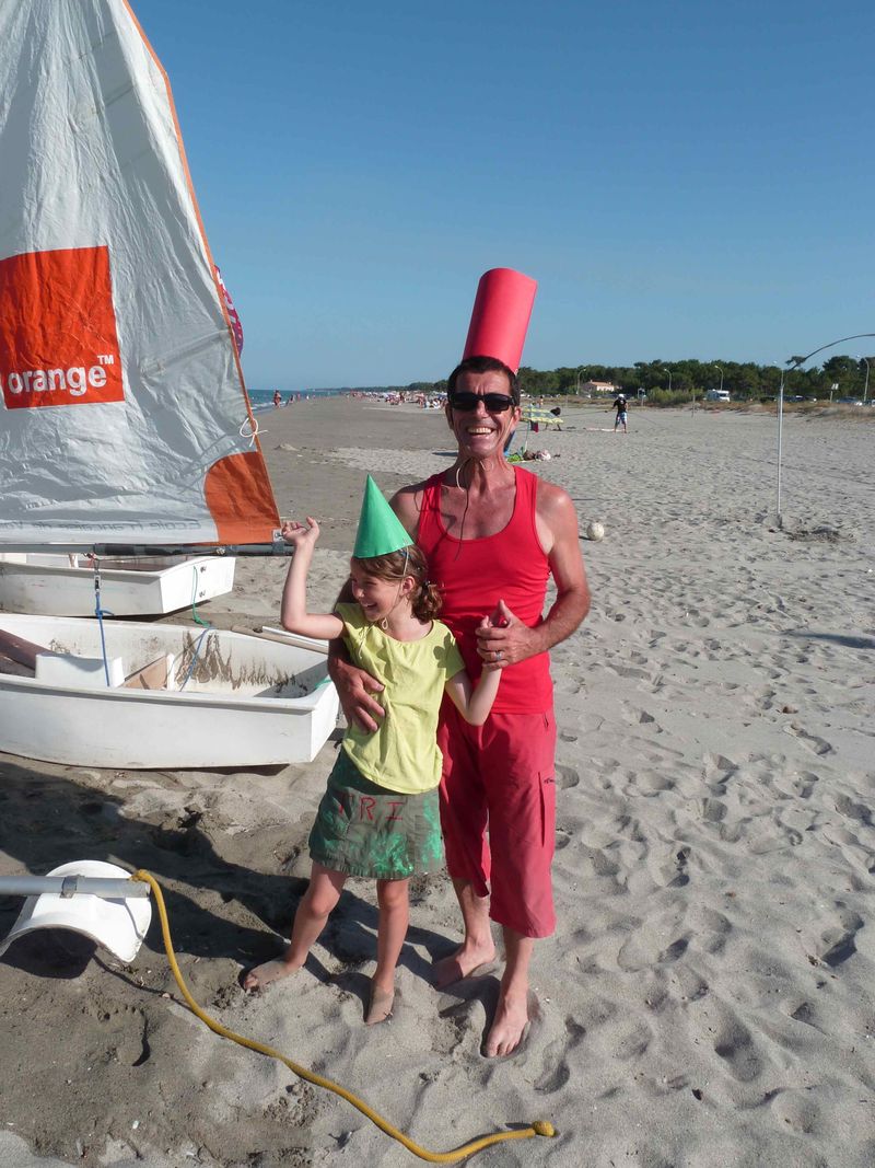 The regatta was a relay race, with two crew. We were registered with Agathe, and as a desguise was necessary, we chose to be dressed like two beacons: the red and the green one ! We got the second price, the first one was given to the Superman crew (difficult to beat them …)