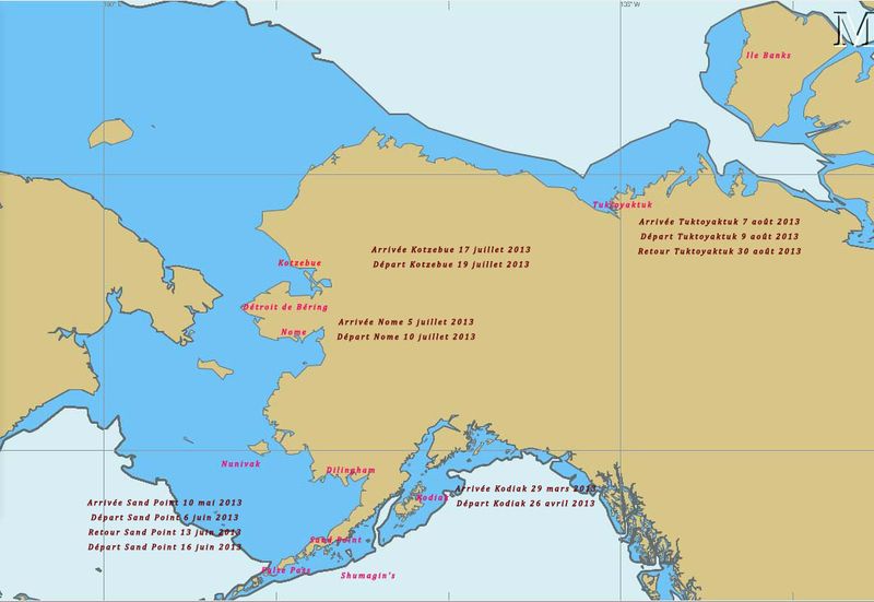 Le Manguier appareillera donc le 26 avril de Kodiak pour remonter vers l'Océan Arctique, où il hivernera pendant l'hiver 2013/2014. Pendant cet hivernage, et durant une période de deux mois, il servira de base à une résidence d'artistes, "Le bateau – givre". Voilà pour les très grandes lignes.