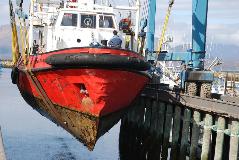Aux alentours du 11 mai (j’ai pas encore la date exacte), le Manguier sort de l’eau à Sand Point pour carénage et divers travaux.