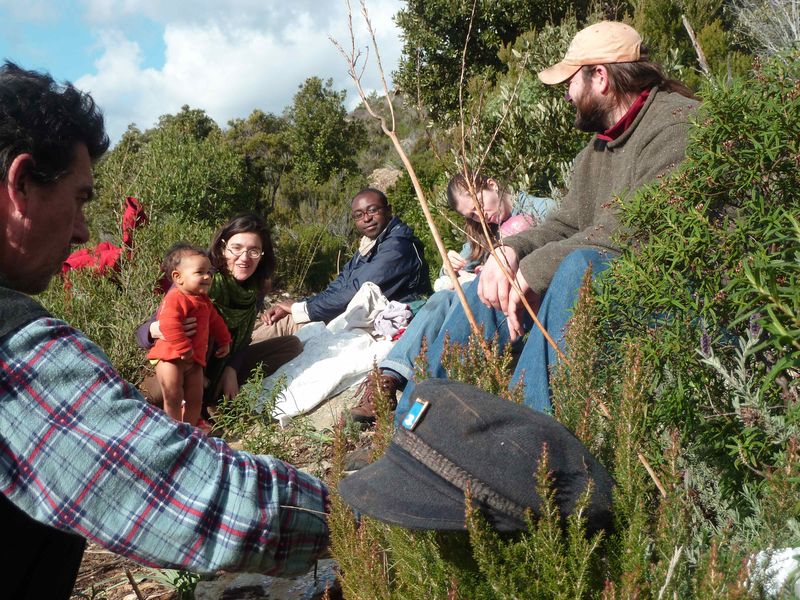 Pose figatelli dans le maquis. Matt, Judith et Tim, Christian, Aude et Céleste