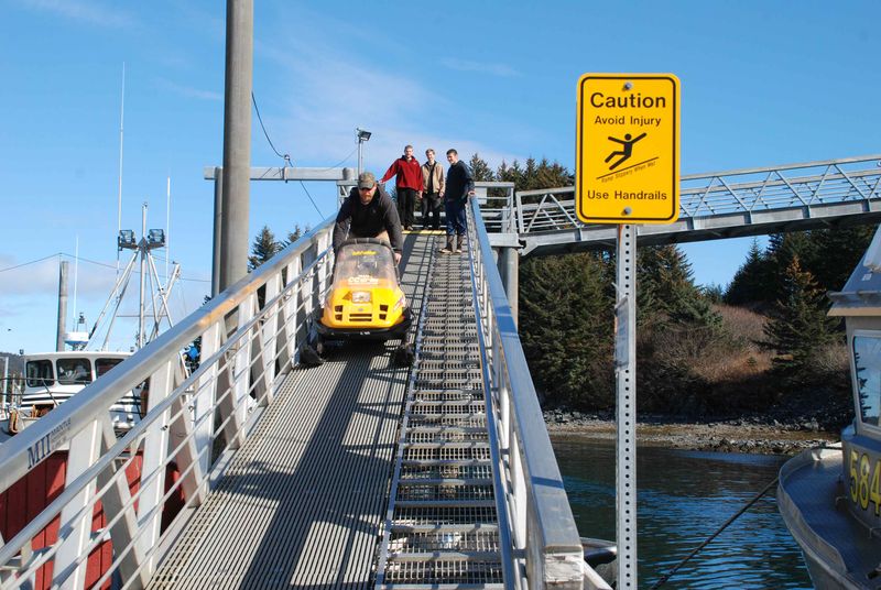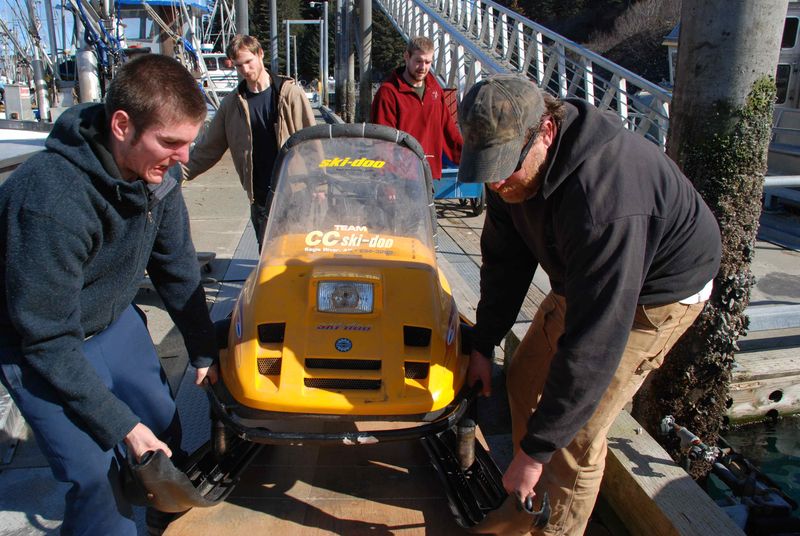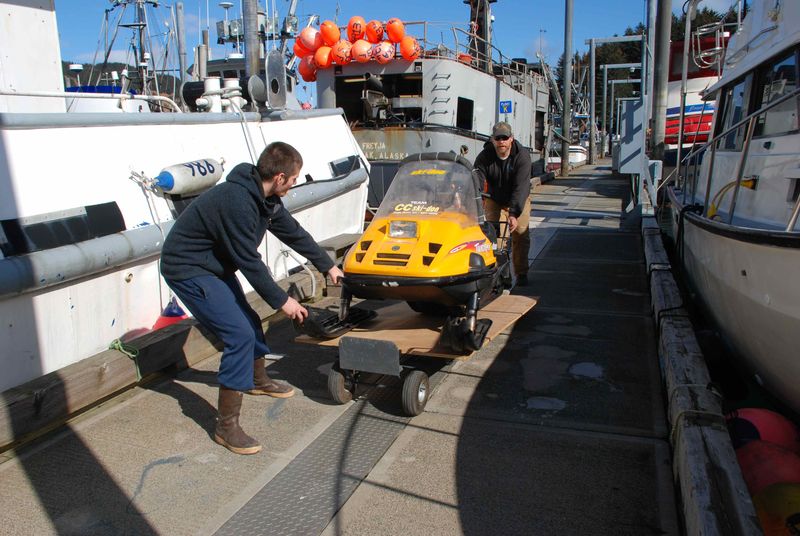 Le débarquement de la moto neige à Kodiak, encore sous le soleil !