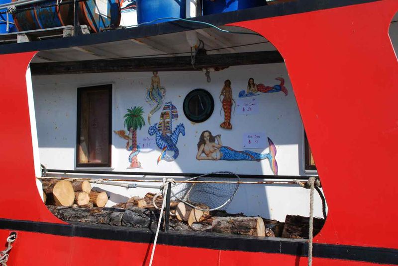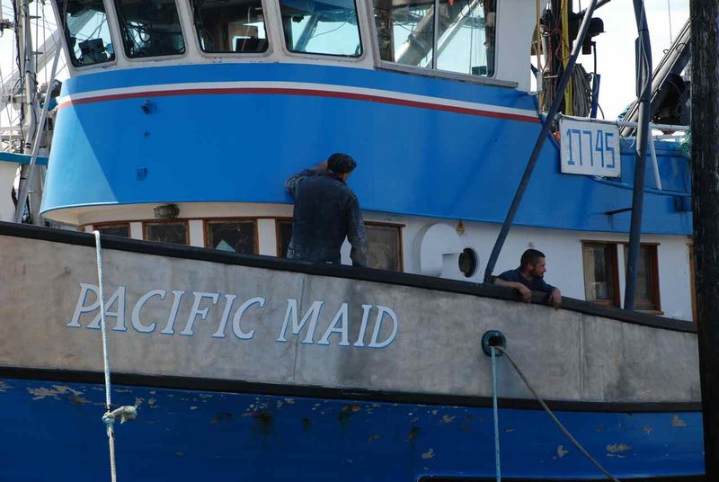 Je crois qu'il faut avoir vu au moins une fois dans sa vie l'effervescence qui précède l'ouverture de la pêche au saumon en Alaska (8 juin je crois cette année). Jusqu'à il y a quelques jours, c'était actif (en comparaison des mois d'hiver que j'ai connu en 2010), mais encore assez tranquille. Et puis, tout à coup, une foule de jeunes venus des Lower 48° (comme on appelle ici les USA) sont arrivés pour préparer les bateaux, et le rythme s'est accéléré. Aujourd'hui (mais que sera demain ! ?), ça a atteint des sommets que je n'avais encore jamais vu: c'était vraiment la folie ! La folie boulot s'entend ! Avec les radios des bateaux à fond (beaucoup de rap, mais Creedence a toujours la côte !), un brouhaha innommable, et surtout, surtout, une température incroyable: il faisait presque 20°C, et soleil ! Alors, j'ai pas pu faire autrement que bosser moi ici …