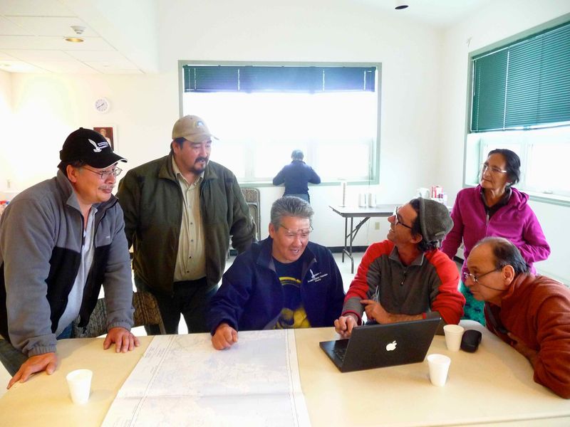 A gauche le mayor, Ray Ruben, accompagnés des représentants de l'association Inuvialuk et des chasseurs/trappeurs