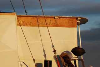 Les vitres avant de la timonerie ont été obturées par un panneau de contreplaqué, découpé à la dimension de 2 chutes de plexi qui restaient à bord. Ledit contreplaqué provenant des caisses de transport chargées sur les barges à destination de Paulatuk … Les vitres latérales attendront notre retour de France pour être recouvertes d'un plexi de 3mm, qui fera double vitrage. C'est que la timonerie est l'endroit idéal pour observer les aurores boréales quand il fait – 30° dehors !