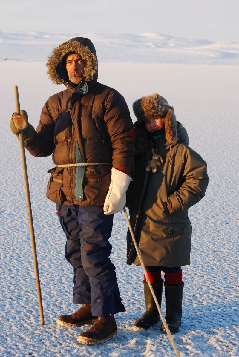 La banquise fait I6 cm d'épaisseur, donc ça devait aller. Et ça allait. On est allé jusqu'à la rivière, gelée bien sûr, et puis on a mis le Ski-Doo sur la glace et on a fait une petite virée avec Agathe ! Génial. Merci Bill, ô merci ! Maintenant, on attend les gars de Paulatuk qui vont venir nous montrer le meilleur chemin pour aller au village, vu que la baie à l'extérieur d'Argo Bay n'est pas encore gelée. À suivre …