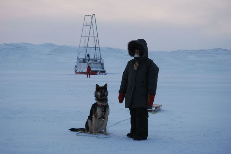 It took me only 3/4 of an hour to reach the boat, and before arriving there, I saw a small black dot moving, that was Rusty! Which hurtled towards me! Everything was fine at the boat, it was -8°C / 18°F inside, all was quiet … I waited for Jona a short while, who was to join me with a whole load, everything necessary for their days hunting, but not seeing him coming, I went back to Paulatuk … Ah! I could talk about Jona for hours! In short, he is one of the Inuvialut who knows best that region, a lovely person, always laughing, and of course great hunter! He was leaving for a five-days hunt of a herd of musk oxen, spotted in the north of the peninsula, and would have brought me with him if I was not leaving! But this is only a postponement!