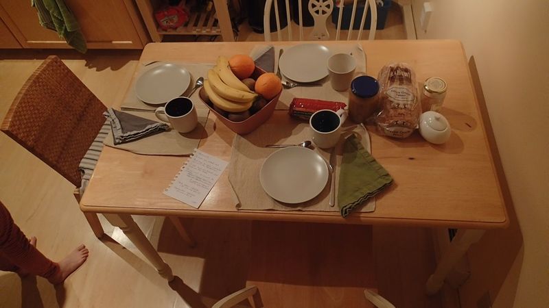 Berta est partie il y a quelques instants au boulot. Et voilà la table que nous déouvrons à notre lever …