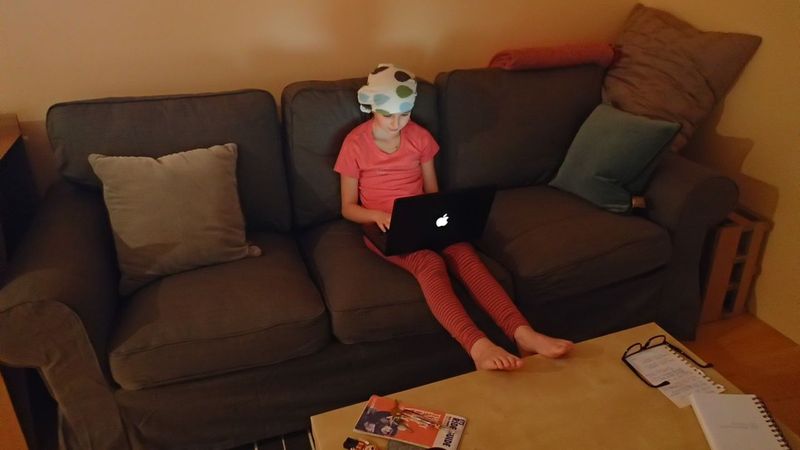 Picture 3. The starlet taking the opportunity to read her emails…