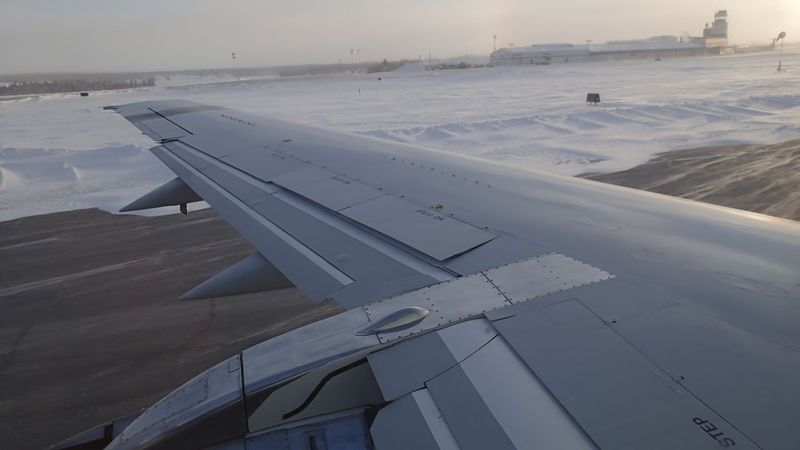 Picture 1. Our sweetheart put her seven-league boots on, propelling us to Calgary in a few hours, after a Greenland flyover.
