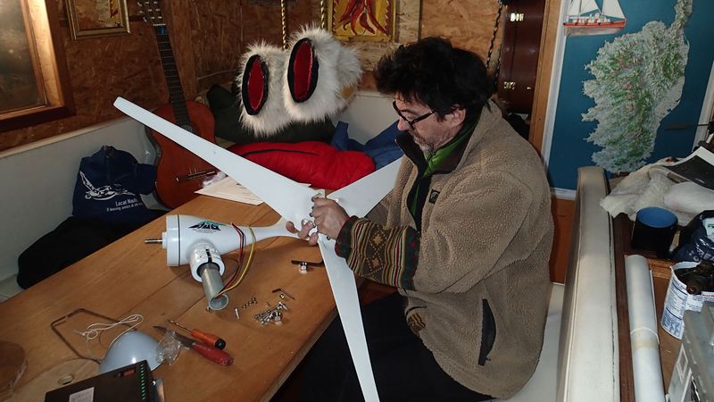 Je ne vais pas tarder à monter la deuxième, au dire de Jean Marc encore plus silencieuse. Et passer le reste de mon temps à regarder tourner ces adorables petits bijoux qui nous dispensent de démarrer notre pétaradant groupe électrogène … Quel plaisir !