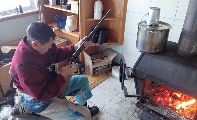 En cette saison, la lumière est permanente. Plus besoin d'électricité. Pour l'heure, le temps d'une bonne flambée, d'une purée lestée de viande hachée de bœuf musqué et chacun se traine, moulu, sur son matelas.