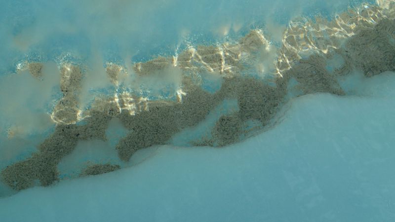 Arrivés au bout du cordon…suspense…la marée est montée, et de toute façon, même à marée basse, c'est trop profond ! Marche arrière. Nous étions quasiment à mi parcours. Arrêt pique-nique pour reprendre des forces. Et nous attrapons un wagonnet de glaçons qui nous permet de gagner la banquise en sautant à cloche pied et de poursuivre notre route en longeant la côte sur le pack ice.