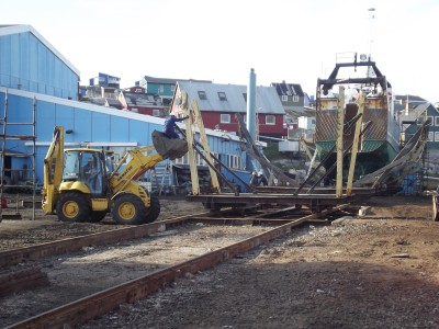Ce soir, Le Manguier sera au Groenland dans le port d'Aasiaat. Ce port est une plaque tournante pour l'approvisionnement de la côte ouest. On y trouve d'énormes entrepôts construits en dur ainsi que des montagnes de containers réfrigérants destinés à la collecte de pêche – principalement crevettes, flétan et cabillaud – avant exportation par la compagnie Royal Arctic.