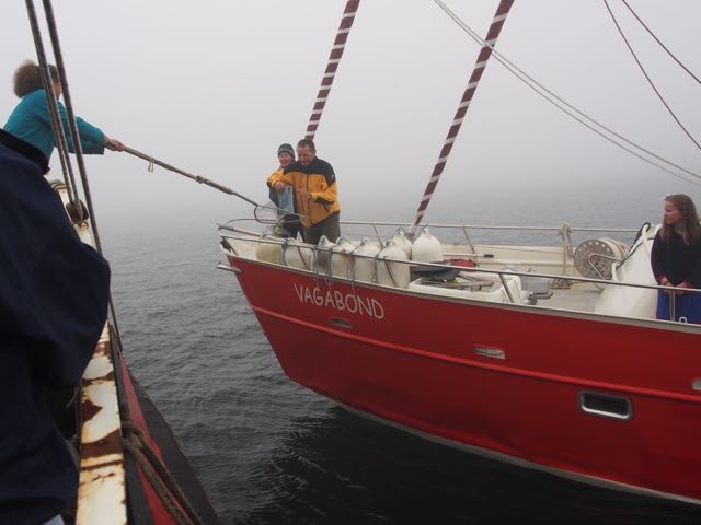 Le radar nous indique un iceberg devant nous. Prudence. Il avance sur nous, rapidement. Le courant serait il si fort ? Le voilà, il est … rouge ! C’est Vagabond ! Une vieille connaissance l’équipage, un autre passionné du cercle polaire.