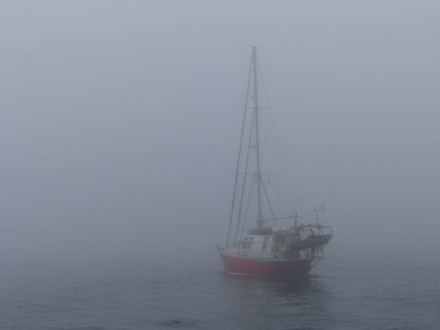 Et maintenant une brume nous enveloppe, opaque et lumineuse, inquiétante et douce à la fois. Elle supprime les limites, elle donne l’impression de flotter dans l’air. Sentiment d’isolement et en même temps, nécessité de vigilance totale : le cap à tenir, les hauts fonds, les icebergs…