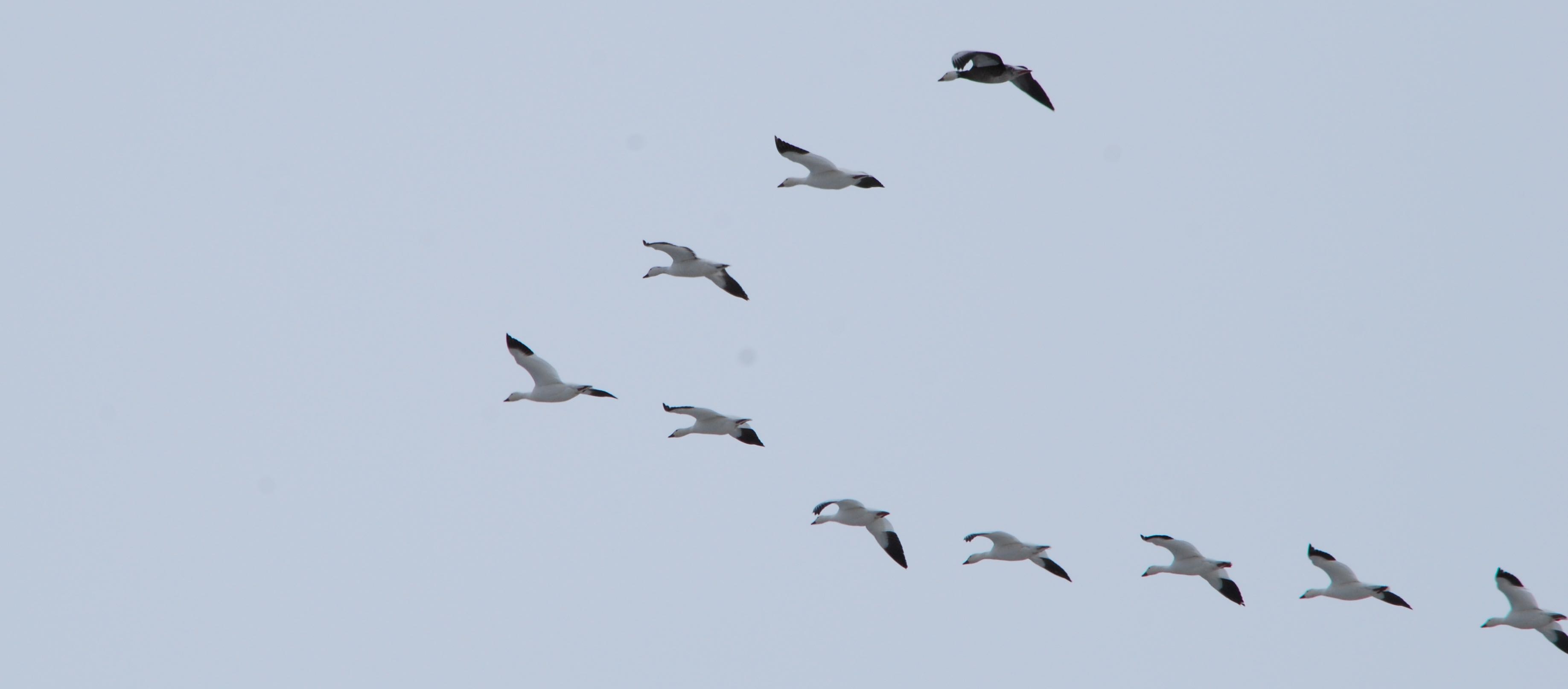 Départ au petit matin avec le fidèle Anthony au volant. Direction Prevost, au nord de Montréal, où se situe le chantier de construction des fameux canots Nor-West. Le ciel est toujours aussi clair, et, merveilleuse surprise tout au long du chemin, des milliers d’oies posées dans les champs …. Il y a des « snow » et des « canada », d’immenses taches blanches qui se mêlent à la couleur brune cendre des bernaches. Je pense que dans quelques jours, elles se poseront peut être dans Argo Bay, et mon coeur se remplit de nostalgie à l’évocation de cette période si belle du réveil de l’Arctique …