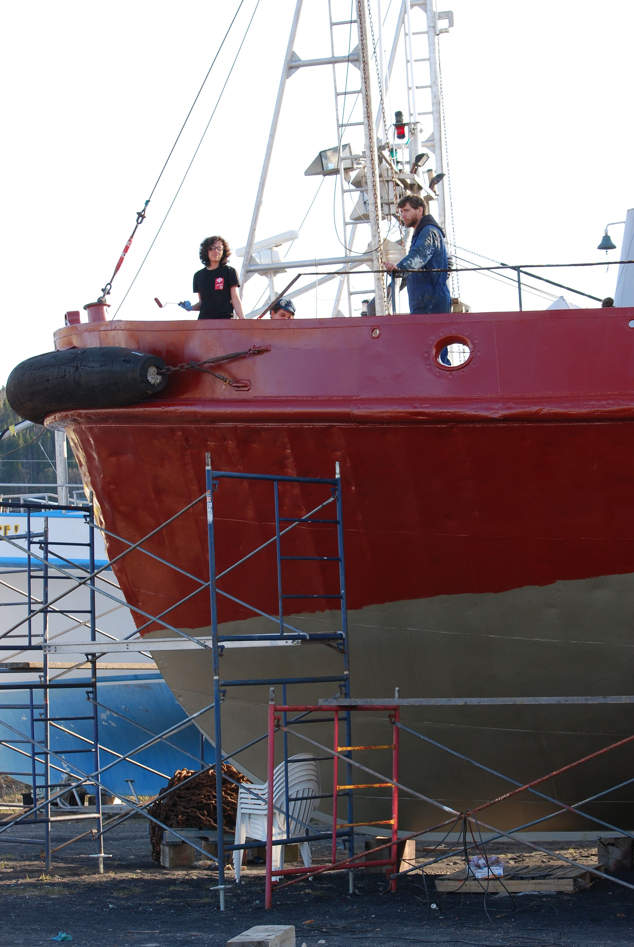 On continue demain (férié au Québec) avec une deuxième couche de bronze, puis ce sera 2 couches d’époxi noire et le Manguier sera paré pour aller se frotter dan sles glaces. Enfin, pas tout à fait, va falloir boucher les trous de la coque avant. Mais Camille (le patron du chantier) m’a promis envoyé un soudeur mardi …