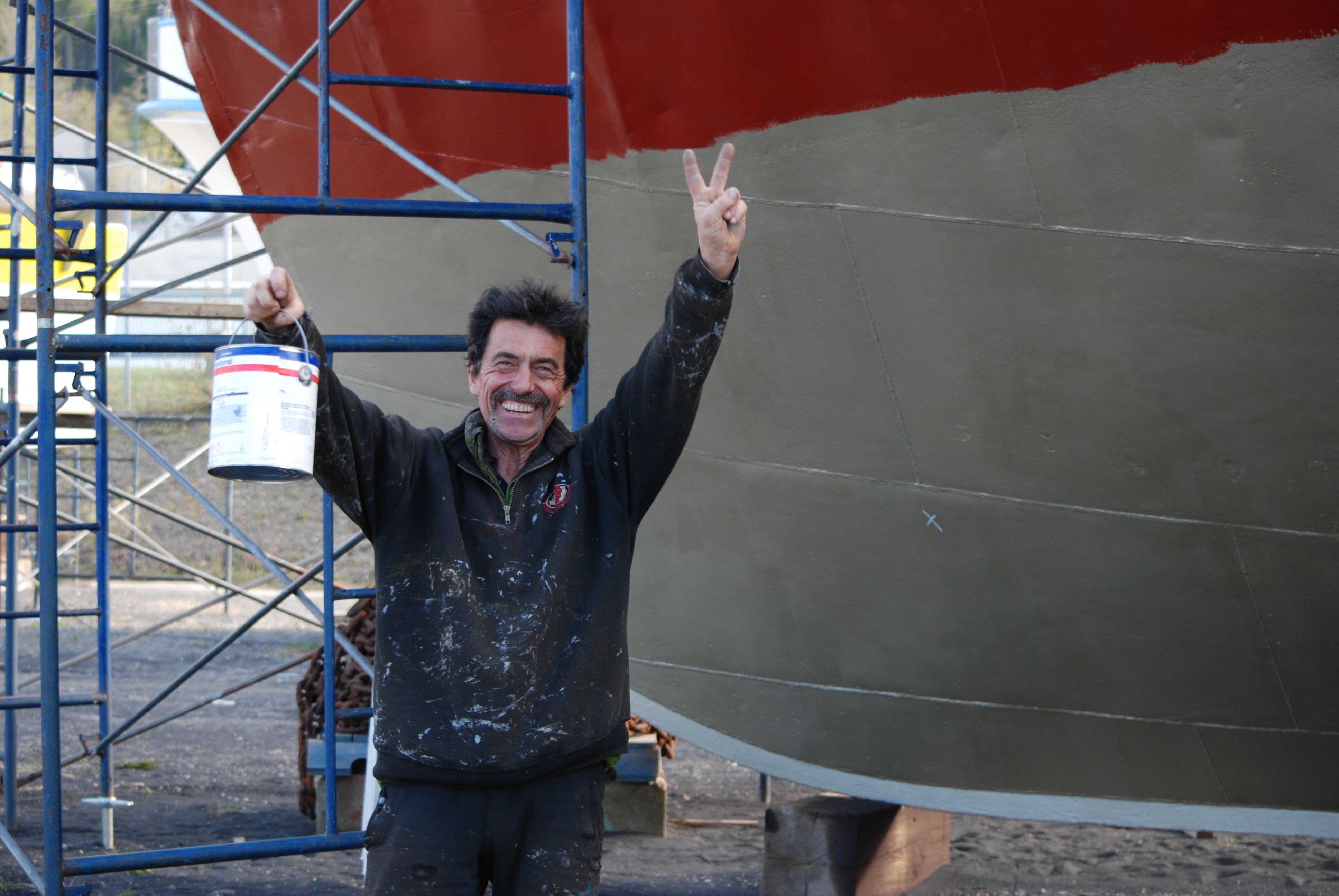 Encore une ! Une couche de peinture dans les fonds du coqueron arrière, la troisième … Ouf, on va pouvoir passer à la reconstruction !
