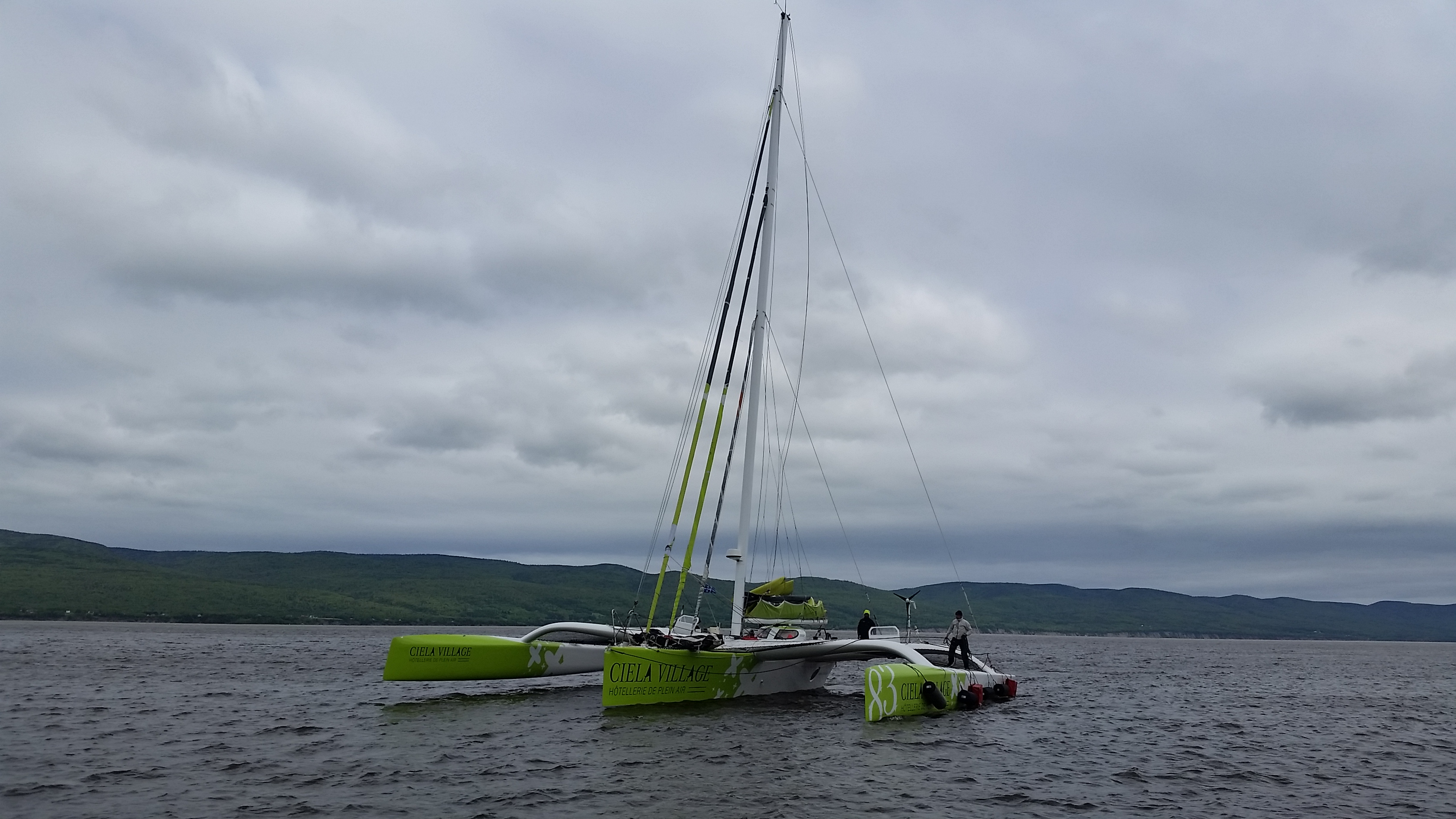C’est vraiment une bonne nouvelle de voir la libellule verte Ciela Villages, qui a pris son envol le 28 mai sous le soleil de la Seyne sur Mer, arriver en parfait état, 19 jours plus tard, à la rencontre du bon vieux remorqueur à voiles rouge Le Manguier, au fin fond de la Gaspésie !
