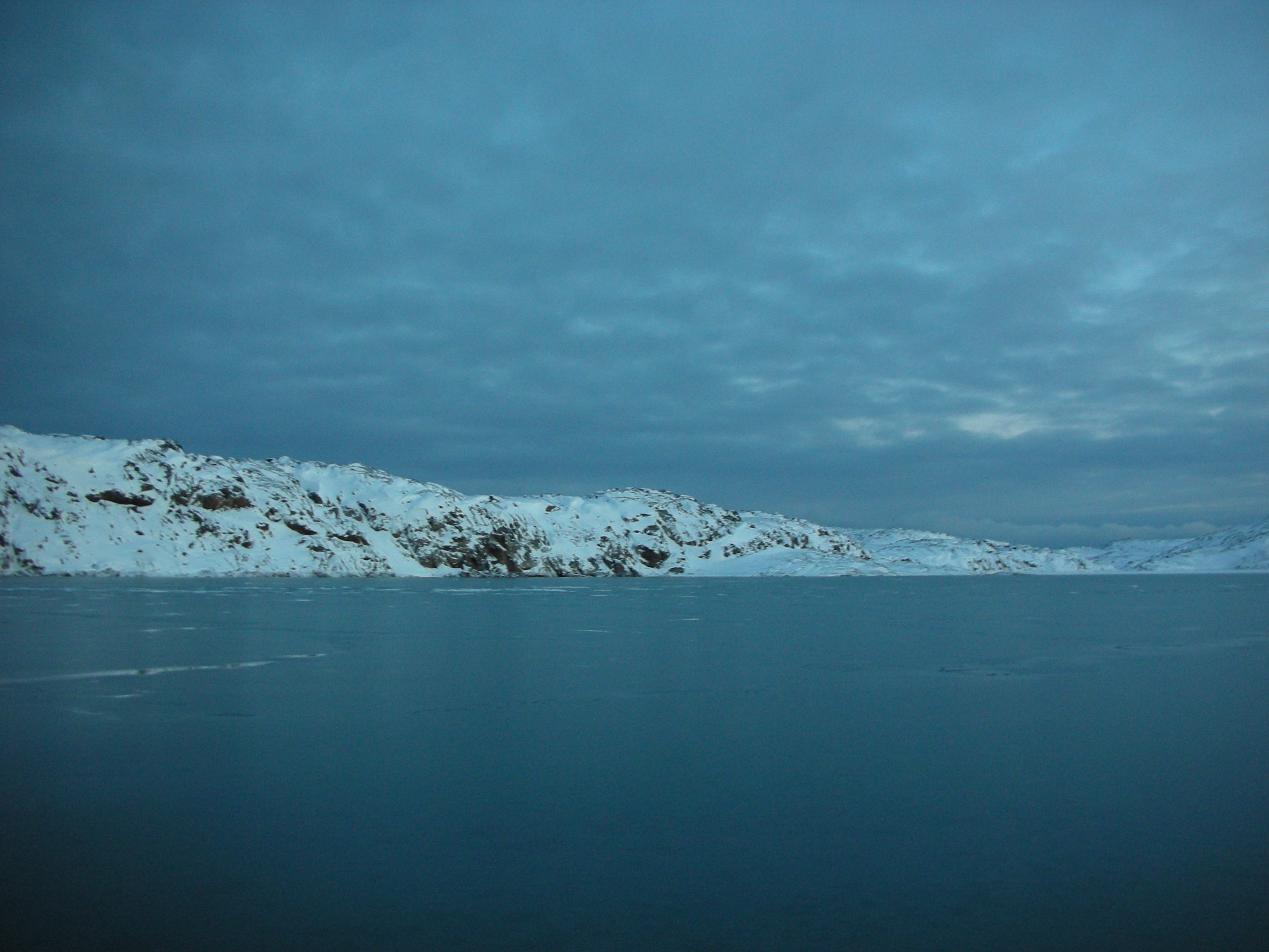 Pendant ce temps-là, au Groenland, un certain bateau rouge appareillait hier du port d’Aasiaat … Dans la nuit noire et une formidable tempête de neige ! Karin et Keven ont fait toute la navigation au radar et au GPS, y compris le mouillage dans la baie de Kaasarfik, en brisant les 5 cm de glace de la toute fraîche banquise !