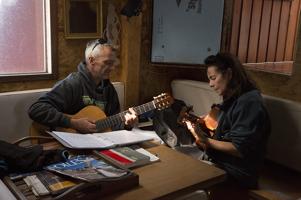 On a chanté bien sur : l’incontournable Tango des Survivants, Léonard Cohen, les Georges Brassens et Moustaki etc … Il s’envole demain le capitaine, direction Aasiaat avec Cécile et Agathe … (et un surpoids de 15 kgs pour les livres et docs fournis par le CNED pour la collégienne future artiste résidente !).