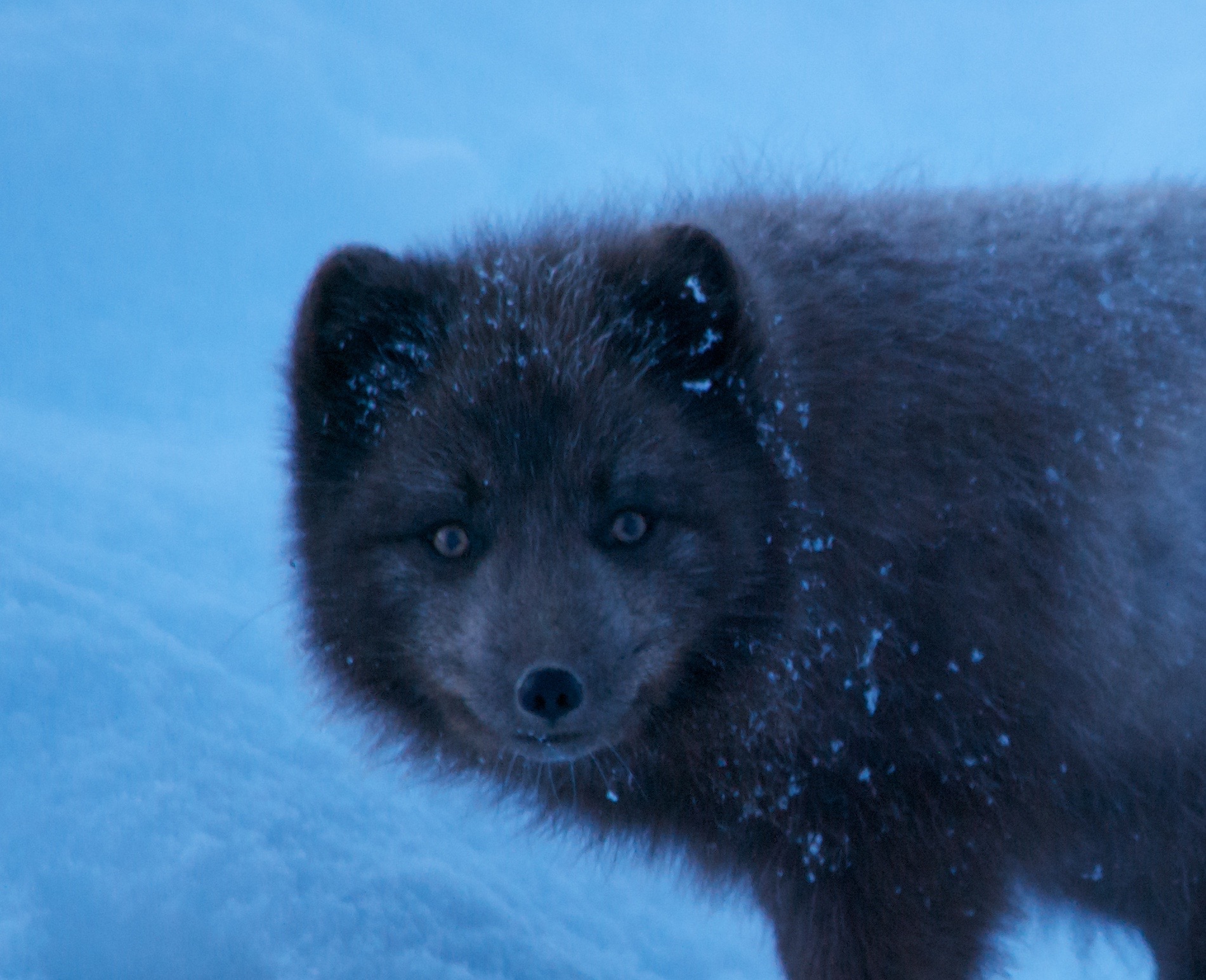 On a commencé à voir ses traces très tôt dans l’hiver. Mais seulement des traces. Le premier à l’avoir aperçu, c’était Julien. Encore lointain, mais de plus en plus proche. Puis il est devenu quasi familier, permettant à Antoine d’en faire la photographie (publiée dans ce même blog). Avant-hier, j’ai pu lui parler … Il était à l’arrière, en train de manger le kaniok que Béa avait laissé à son intention. Et je lui ai précisé le contrat. Lui me permet de le voir à loisir, de le photographier, moi je lui donne tout nos restes de nourriture, quelques petits poissons de temps à autre, pour améliorer l’ordinaire. Seulement voilà, pas question que tu montes à bord, et que tu commences à chaparder des trucs. Sinon, je te transforme en descente de lit, et ta queue fera une belle toque …