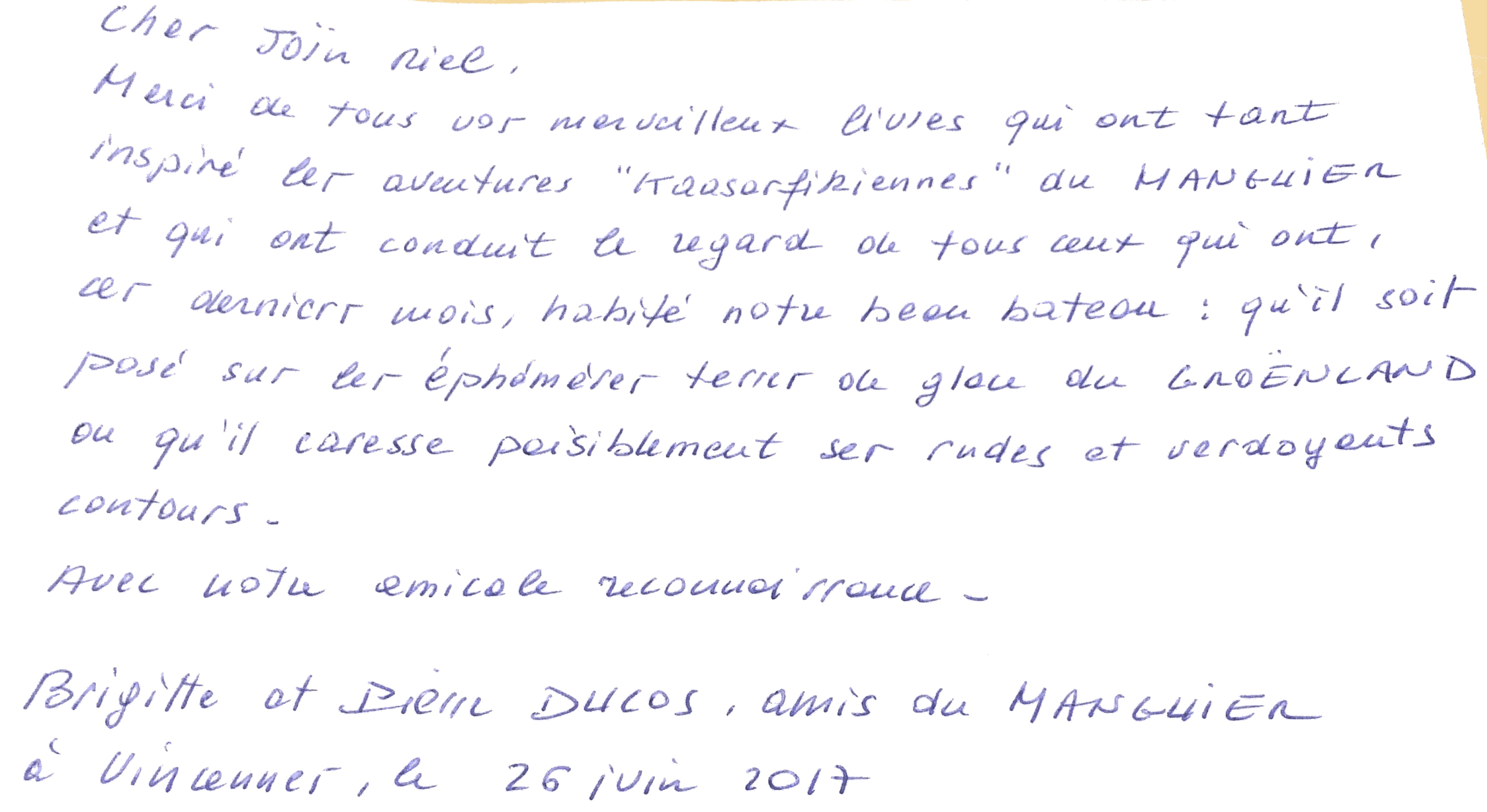 Envoyés par porteur spécial, je vous laisse découvrir ci-après les petits mots/dessins envoyés à Jørn Riel, « par qui tout a commencé » !!!