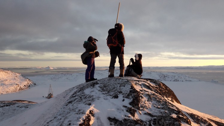 Ça y est ! ILS sont arrivés ! Lars, le cousin de Jens Peter, était parti au petit matin pour ramener sur son bateau (non ponté ! ) la joyeuse équipe ! Le soleil était de la partie. Le froid aussi: – 20°C. Pas étonnant qu’à l’arrivée, ils aient été un peu transis ! Surtout que Lars avait la machine à fond !!! Sauf dans la baie d’Akunnaaq, qui commençait à geler, où il a dû ralentir un peu !