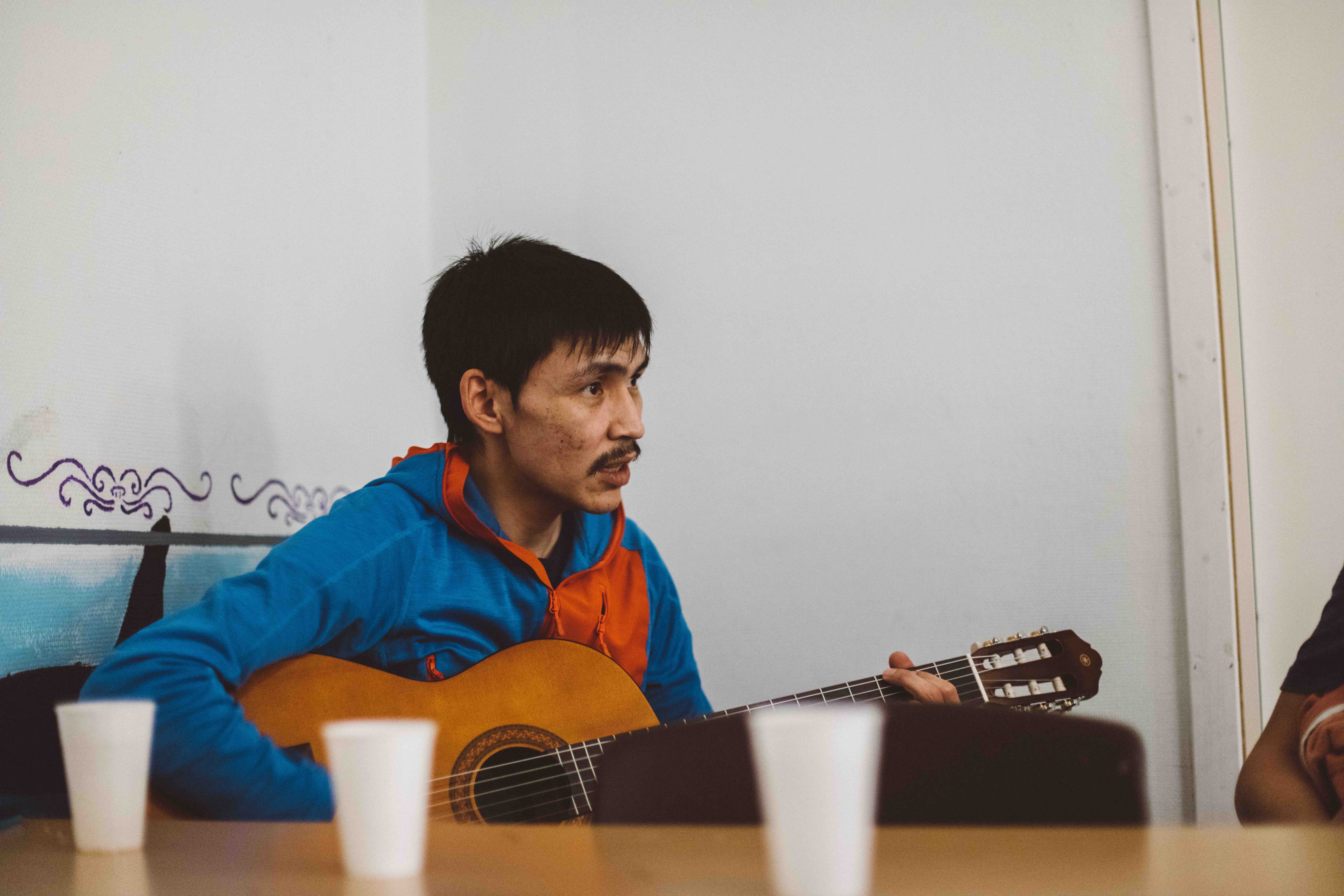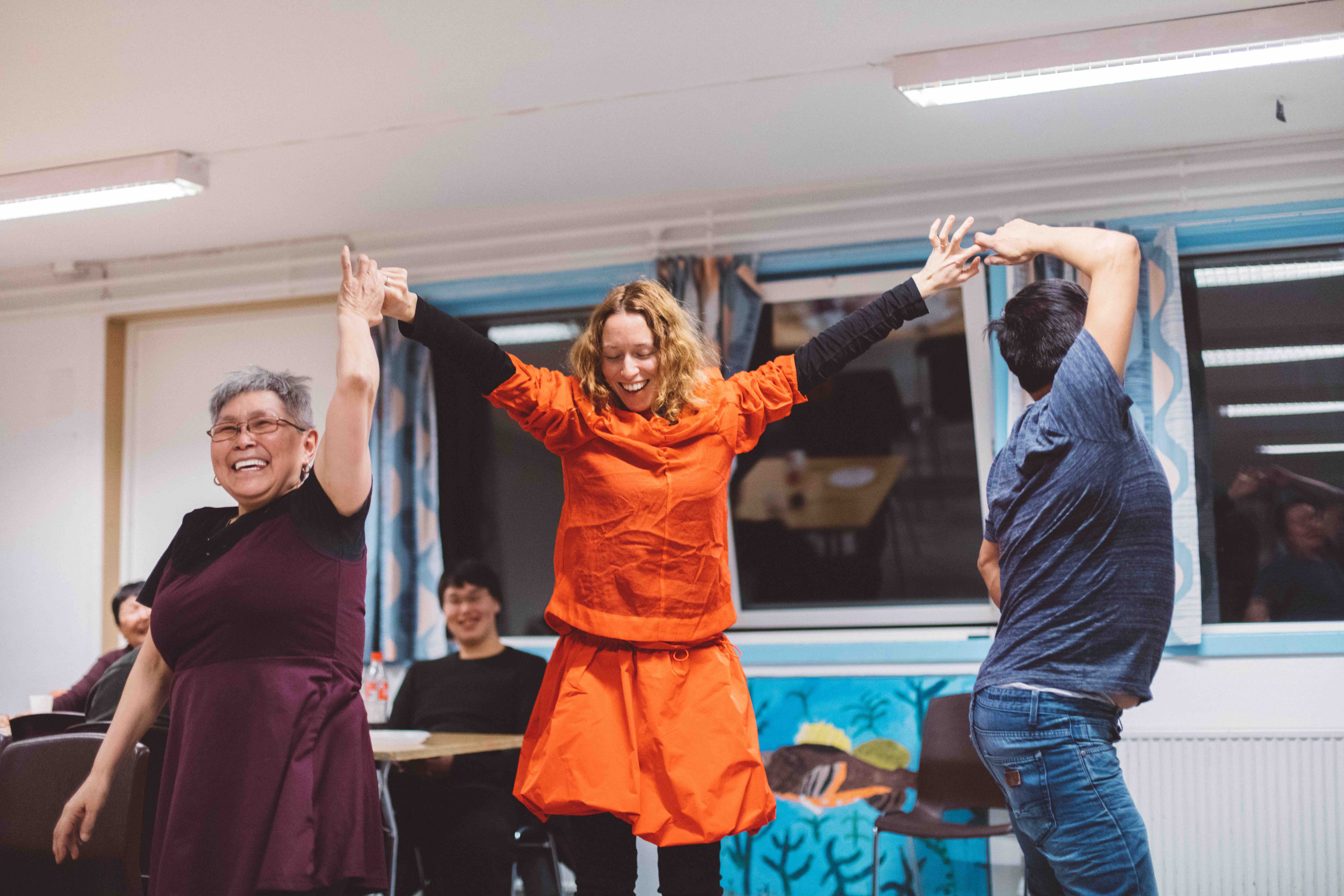 Présentations d’usage (qui nous sommes, pourquoi nous sommes ici), repas, puis tango Oïjha/Arnaud, accompagné de Ilit/Pitaraq (faisant les pitres), puis autres danses à deux, dirigées par Oïjha, couples franco/groenlandais, chants (l’hymne d’Akunnaaq entre autre et l’histoire d’un merle que l’on mange par petits bouts – A merula !-), concours de rapidité pour manger les amassat, (Aurélie a battu l’oncle de Jens Pitaa, pourtant très entraîné ! Mais Aurélie a horreur de perdre nous a-t-elle dit la bouche encore pleine !)
