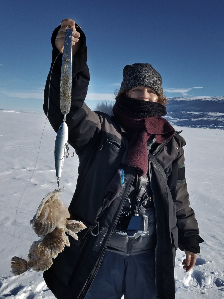 Sikumut ! C’est un sacré boulot de faire un trou dans la glace, mais le résultat est là, tangible, visible. Et Férial pas peu fière !!!