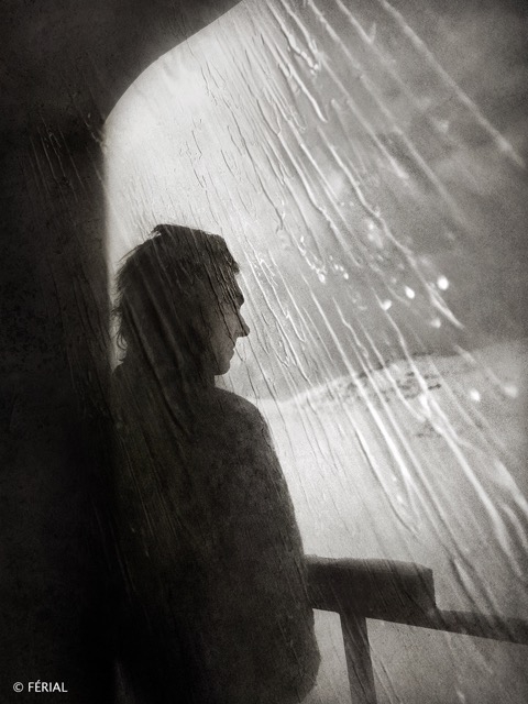 Six heures trente ce matin. Première nuit dans le bateau, premier réveil derrière le hublot. Les premières fois, c’est toujours beau. Le givre colle aux vitres. Les cheveux en bataille, estompés dans la brumaille, Philippe est une statue de verre. Endormi, enseveli, ses songes au creux du lit.