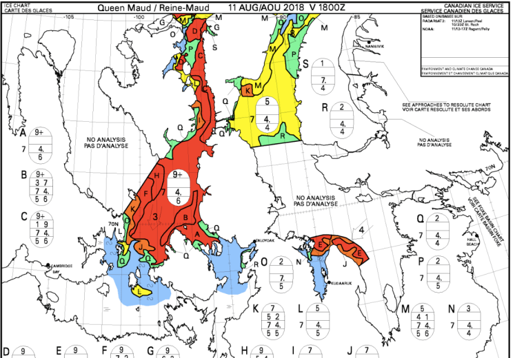 Côté Détroit de Bellot (le fameux !), c’est guère mieux ! Du 9+ à la mi-août … Bon, ça a le temps de s’ouvrir, mais va falloir être patient, et … pas louper la bonne fenêtre !