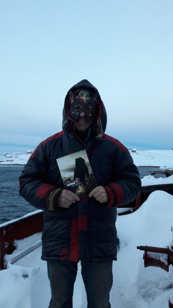 Le chevalier masqué (merci Romane !) dédicace SUMUT aux habitants d’Akunnaaq !