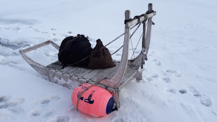 Seul problème, les bagages. Je suis donc en train de concocter un traineau flottant qui permettrait à la fois de glisser sur la banquise et de flotter sur la mer … Quelque chose du genre :