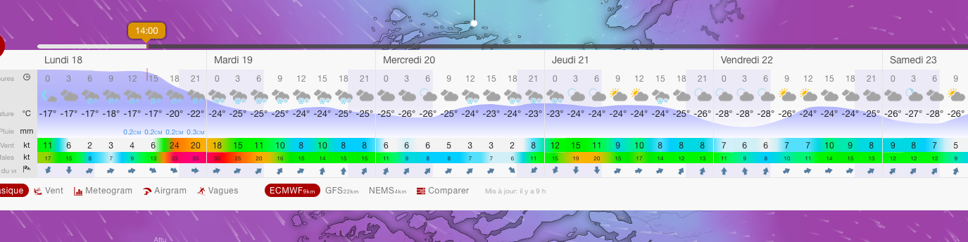Et comme pour souhaiter la bienvenue aux prochains résidents, le froid est de retour ! Jugez-en par vous-même ! – 28°C prévus en fin de semaine, et déjà aujourd’hui le froid était vif pour venir du bateau au village … Impossible de savoir si l’hiver commence, ou s’il finit …